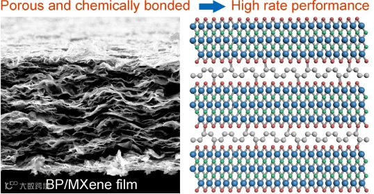 图1. 高比能、高倍率多孔BP/Ti3C2Tx异质结构薄膜电极材料