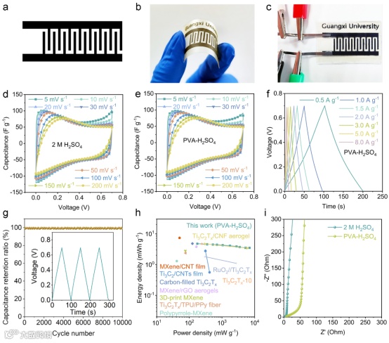 图6. 超级电容器的电化学性能分析。
