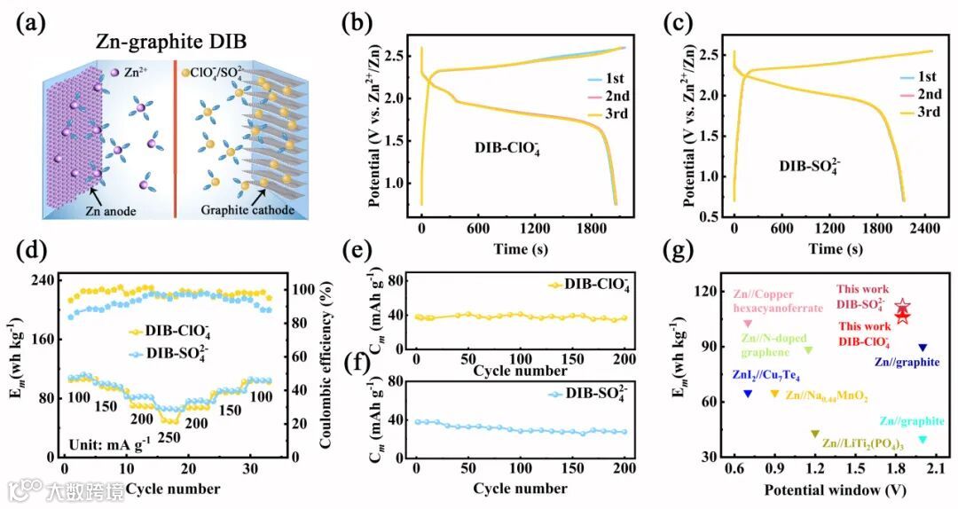 图3. Zn-石墨双离子电池的结构示意图和相关的电化学性能。
