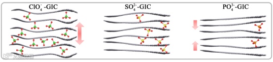 图2. 不同价态的阴离子嵌入石墨形成石墨插层化合物示意图。