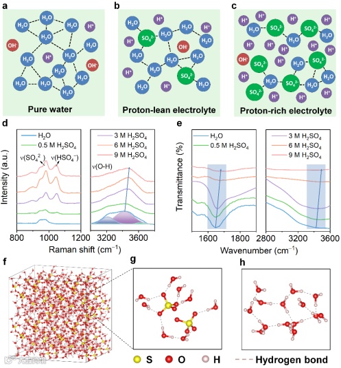 图1. 富质子电解液的设计原理和溶剂化结构