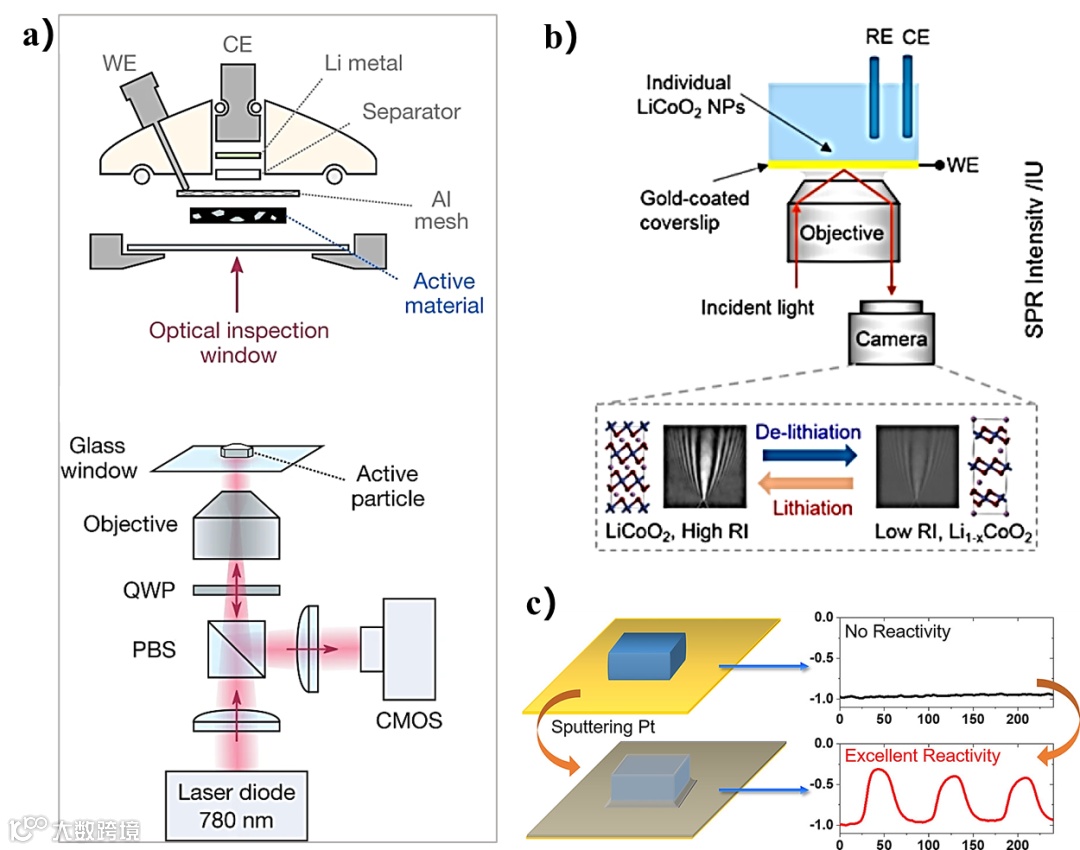 实时跟踪和了解功能材料在纳米或微米尺度下在原位或操作条件下发生的动态过程,有助于推进先进的锂离子电池材料和技术的发展,特别是电池的快速充电技术。光学干涉散射显微镜(ISCAT)、表面等离子体共振显微术(SPRM)等是快速、高通量、低成本的成像平台,可实现快速、高灵敏度、高通量的信号采集,可以在单颗粒尺度上可视化和量化离子动力学。