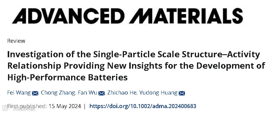近日,燕山大学王飞等,在国际知名期刊Advanced Materials上发表题为“Investigation of the Single-Particle Scale Structure–Activity Relationship Providing New Insights for the Development of High-Performance Batteries”的观点文章。该观点文章综述了储能材料在单颗粒尺度上的电化学测量和物理表征,同时展望了它们在单颗粒电化学模拟和机器学习中的潜在应用前景。