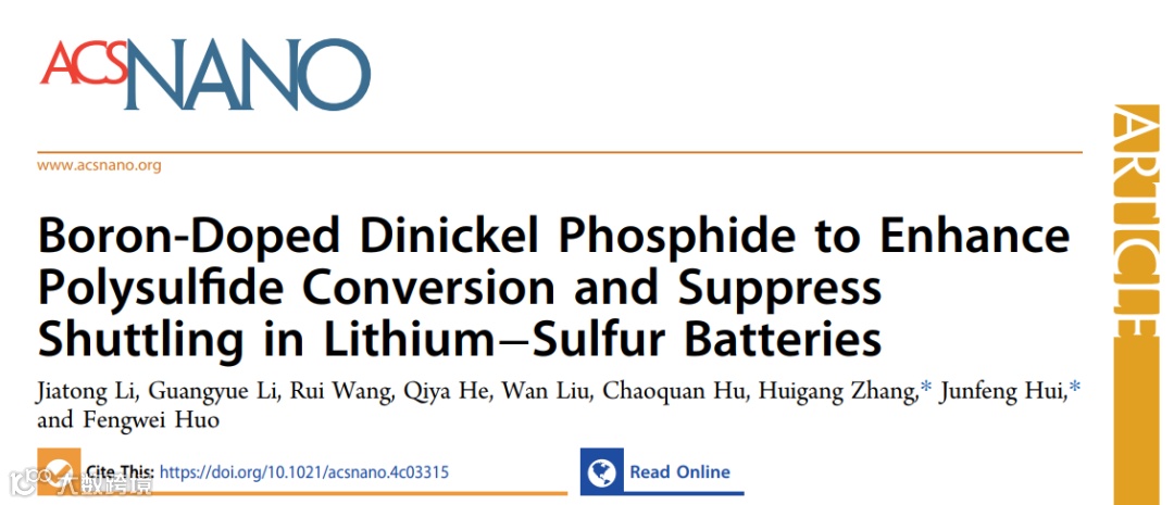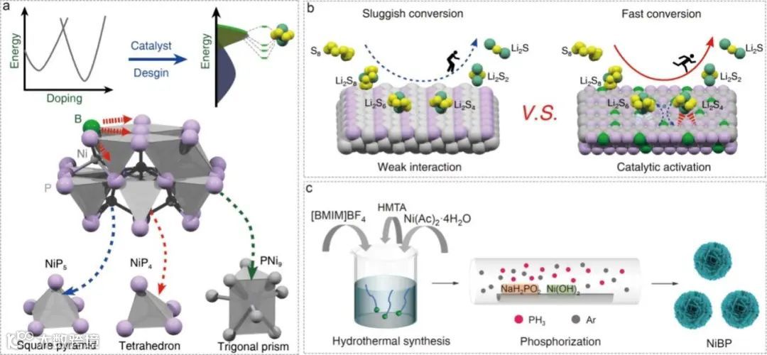 硼掺杂磷化二镍可增强多硫化物转化并抑制锂硫电池中的穿梭效应