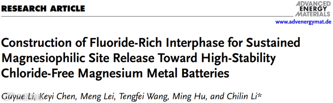 构建持续释放亲镁位点的富氟界面层实现高稳定无氯镁金属电池