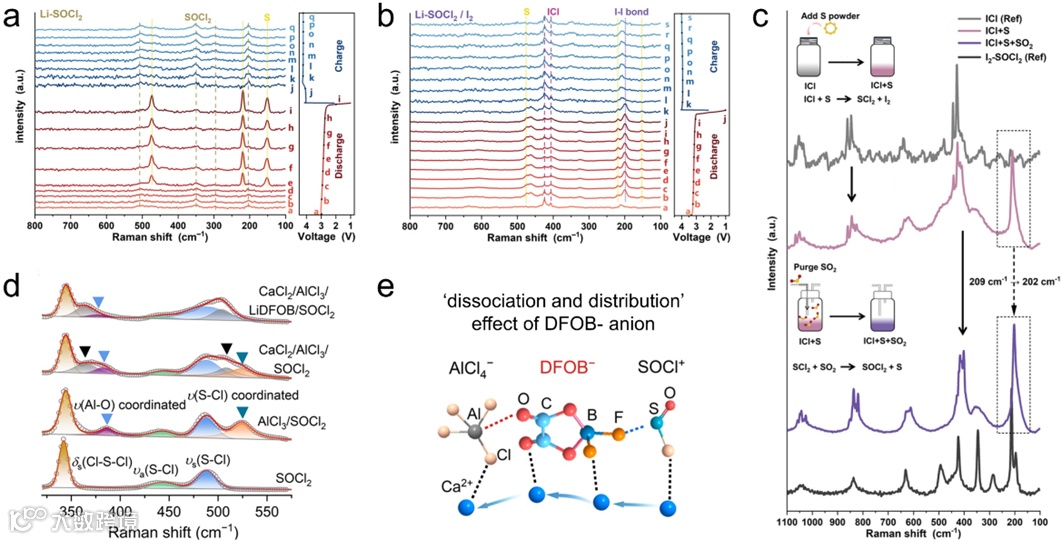 图16 拉曼光谱用于AM-Cl2电池中电解液的表征。