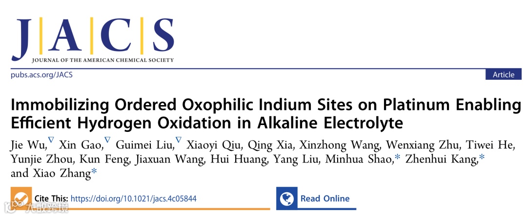 2. 在有序金属间化合物O-Pt3In中,Pt作为H吸附位点,In作为OH−吸附位点,二者通过双功能机理协同增强了碱性HOR反应动力学。在50 mV的过电位下,O-Pt3In的质量活性是商业铂碳的10倍,并在碱性氢氧燃料电池中实现了1153 mW cm−2的峰值密度。