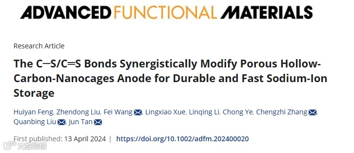 C-S/C=S键协同修饰多孔中空碳纳米笼负极实现快速稳定的钠离子储存