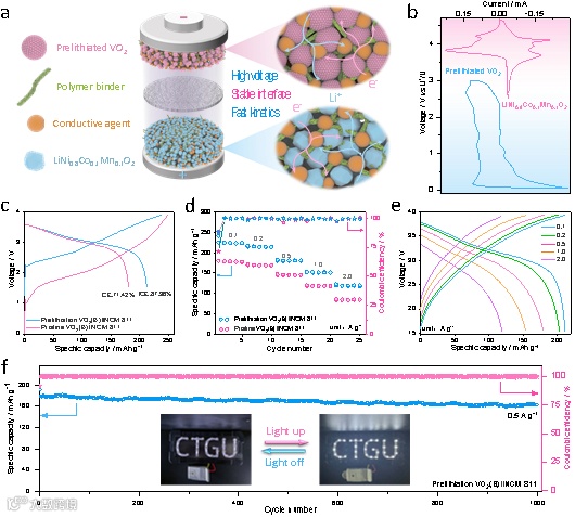 要点六:预锂化VO2(B)负极与NCM811匹配成全电池,综合性能得到显著提升。