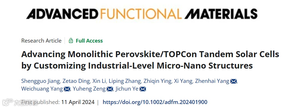 通过工业级微纳结构优化钙钛矿/TOPCon叠层太阳能电池性能