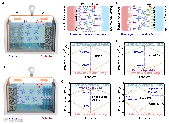 图2. 钾离子混合电容器的工作原理和存在的科学问题