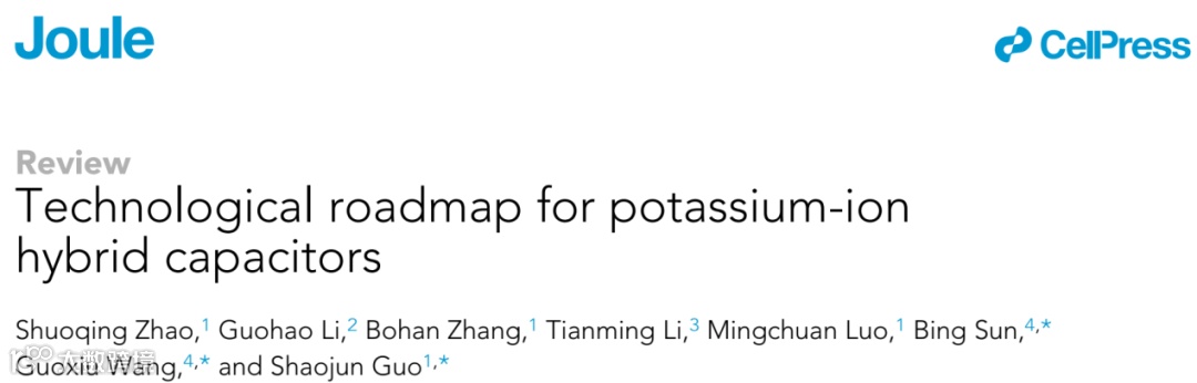 近日,来自北京大学的郭少军教授与悉尼科技大学孙兵助理教授、汪国秀教授合作,在国际知名期刊Jouel上发表题为“Technological roadmap for potassium-ion hybrid capacitors”的综述文章。该综述文章详细讨论钾离子混合电容器的储钾机制和科学挑战,总结针对钾离子混合电容器的改性策略和基础研究与实际应用的差异原因。
