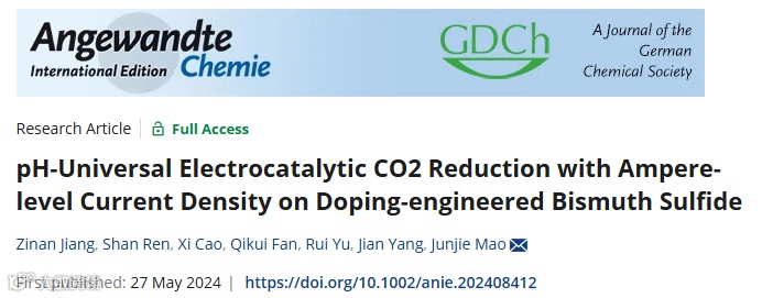 pH-Universal Electrocatalytic CO2 Reduction with Ampere-level Current Density on Doping-engineered Bismuth Sulfide Angew. Chem. Int. Ed. 2024, e202408412.