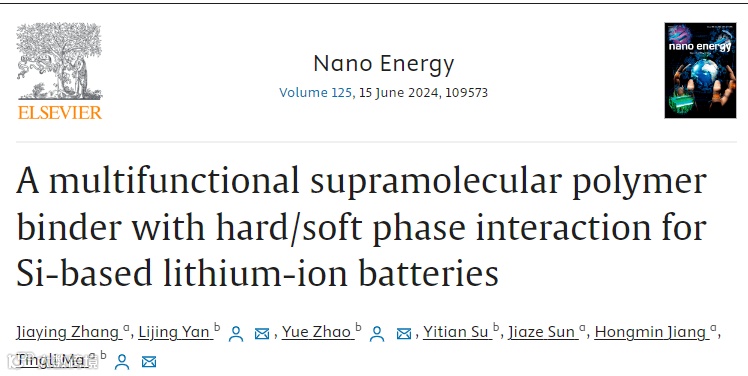 多功能超分子聚合物粘结剂助力提升硅基负极锂离子电池