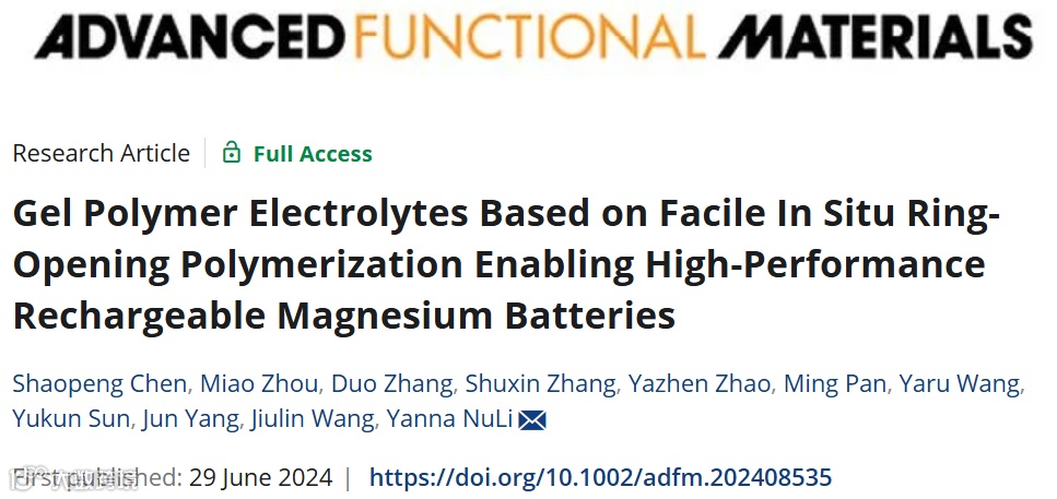 可充镁电池由于镁负极能量密度高、成本低、安全性好等优点而成为有潜在应用前景的储能器件,而电解液是影响其发挥优势的关键因素。聚合物电解质凭借其高安全性、高稳定性、结构灵活等优势成为可充镁电池电解液的理想选择,但开发与金属Mg负极相容的聚合物电解质仍然存在挑战。通过原位开环聚合制备凝胶聚合物电解质 (gel polymer electrolyte, 简称GPE)具有反应条件温和、化学成分可控、制备工艺简单等优点,并且与非原位GPE相比,原位GPE表现出更加良好的界面接触特性(图1a, b),有利于降低界面阻抗,提高界面传输动力学,优化电池循环性能。