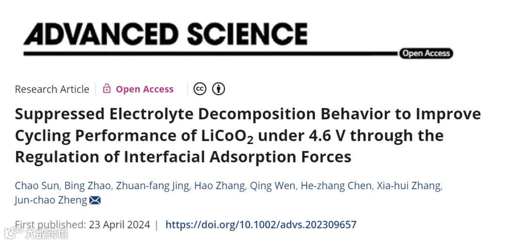 对于钴酸锂(LCO)而言,通过将充电截止电压提高到4.6 V,可有效提高其体积能量密度,从而支持清洁能源的大规模应用。然而,电解质在4.6 V条件下的快速分解不仅会失去锂离子的传输载体,还会产生HF和绝缘体,破坏钴酸锂的界面并增加阻抗。缓解电解液的分解对提高正极的循环稳定性具有重要意义。