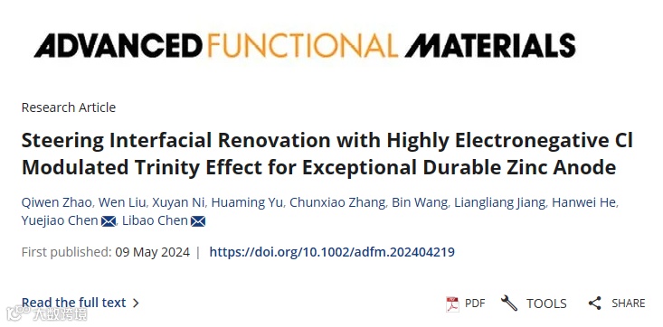 高电负性 Cl 调制的三位一体效应引导界面修整,打造卓越耐用的锌负极
