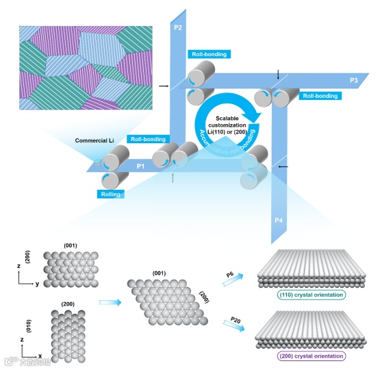 图1. 累积滚压键合工艺制备具有高择优取向的抛光锂金属的流程图。