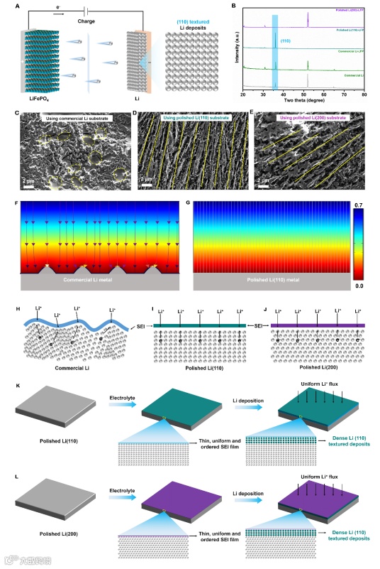 金属锂具有超高的理论容量(3860 mA h g-1)、低密度(0.534 g cm-3)和最低的电极电位(-3.04 V相对于标准氢电极)的特点,被认为是下一代高能可充电电池理想的负极材料。然而,其商业化实施长期受到锂枝晶的不可控生长和锂金属高反应性引起的严重副反应的影响,导致库仑效率低,缩短了电池的循环寿命,还可能造成严重的安全事故。为此,研究人员开发了了各种各样的策略,包括优化电解液配方、开发先进的隔膜、在锂金属表面构建稳定的保护层、构建三维锂金属电极等。尽管这些方法看起来在改善电池的循环寿命方面展示出巨大的潜力,但在实际工作条件下的电化学性能仍然不尽人意。而大多数现有方法被认为是外来策略,并不能改变锂金属基底的晶体结构。