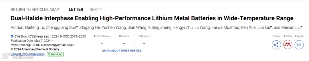 近日,来自的广西大学的刘美男教授与湖北大学孙争光教授以及华南理工大学的刘军教授合作,在国际知名期刊ACS Energy Letters上发表题为“Dual-Halide Interphase Enabling High-Performance Lithium Metal Batteries in Wide-Temperature Range”的文章。该文章分析了单一LiF作为界面设计的有效成分存在的一些不足,提出构筑高稳定的双卤化LiF/LiCl界面(EEI)策略,该界面不但提升了锂离子的输运动力学,还有效阻隔了电极与电解液在苛刻条件下(高压、高温、低温)的一些剧烈副反应,进而实现了金属锂电池的宽温域(-20~60C)运行,助推金属锂电池的实际应用。
