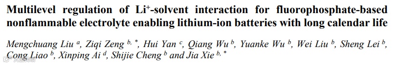 溶剂-阴离子多级调控削弱氟代磷酸酯与Li+作用,构建锂离子电池用长日历寿命非可燃电解液