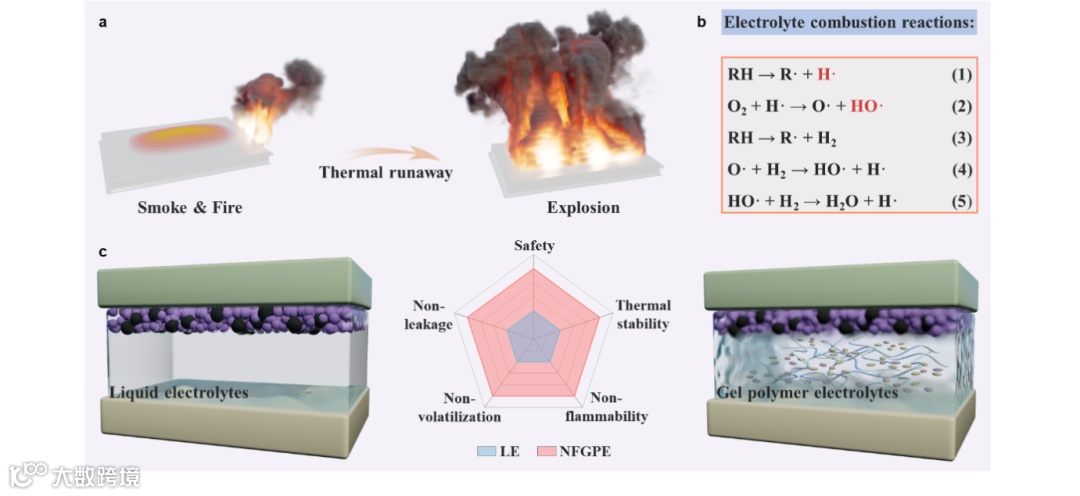 由锂金属负极和高镍三元正极组成的锂金属电池有望突破能量密度限制。然而,传统的有机碳酸酯电解液具有易泄露、热稳定性差、易燃性等问题,增加了锂金属电池在滥用条件下的热失控风险,导致电池冒烟、起火甚至爆炸等严重安全事故。