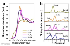 由于沸石微孔的空间限域效应,沸石封装的金属或金属氧化物尺寸很小,甚至达到亚纳米或原子尺度。此外,金属与沸石骨架之间存在很强的相互作用,被封装金属物种的几何和电子特性非常复杂。通常的表征手段包括X射线衍射(X-ray diffraction)、X射线光电子谱(X-ray photoelectron spectroscopy)、透射电子显微镜已经被用于证明金属物种是否封装于沸石的微孔中。但这些表征不能揭示沸石包覆金属催化剂中金属物种的精细结构以及配位环境。因此发展了先进的表征技术,如球面像差校正扫描透射电子显微镜(Cs-corrected STEM)、X射线吸收光谱(XAS)和低温CO红外光谱(CO-FTIR)等,以实现在原子水平上对金属位点的精细结构进行研究(如图4,图5和图6所示)。此外,由于包覆环境的复杂性,如何定量判断并分析沸石微孔内金属物种的含量仍然是技术挑战。目前通用的解决途径是通过基于沸石微孔孔径筛选的不同尺寸的探针分子的滴定实验,但所得结论仍然属于定性或半定量分析。