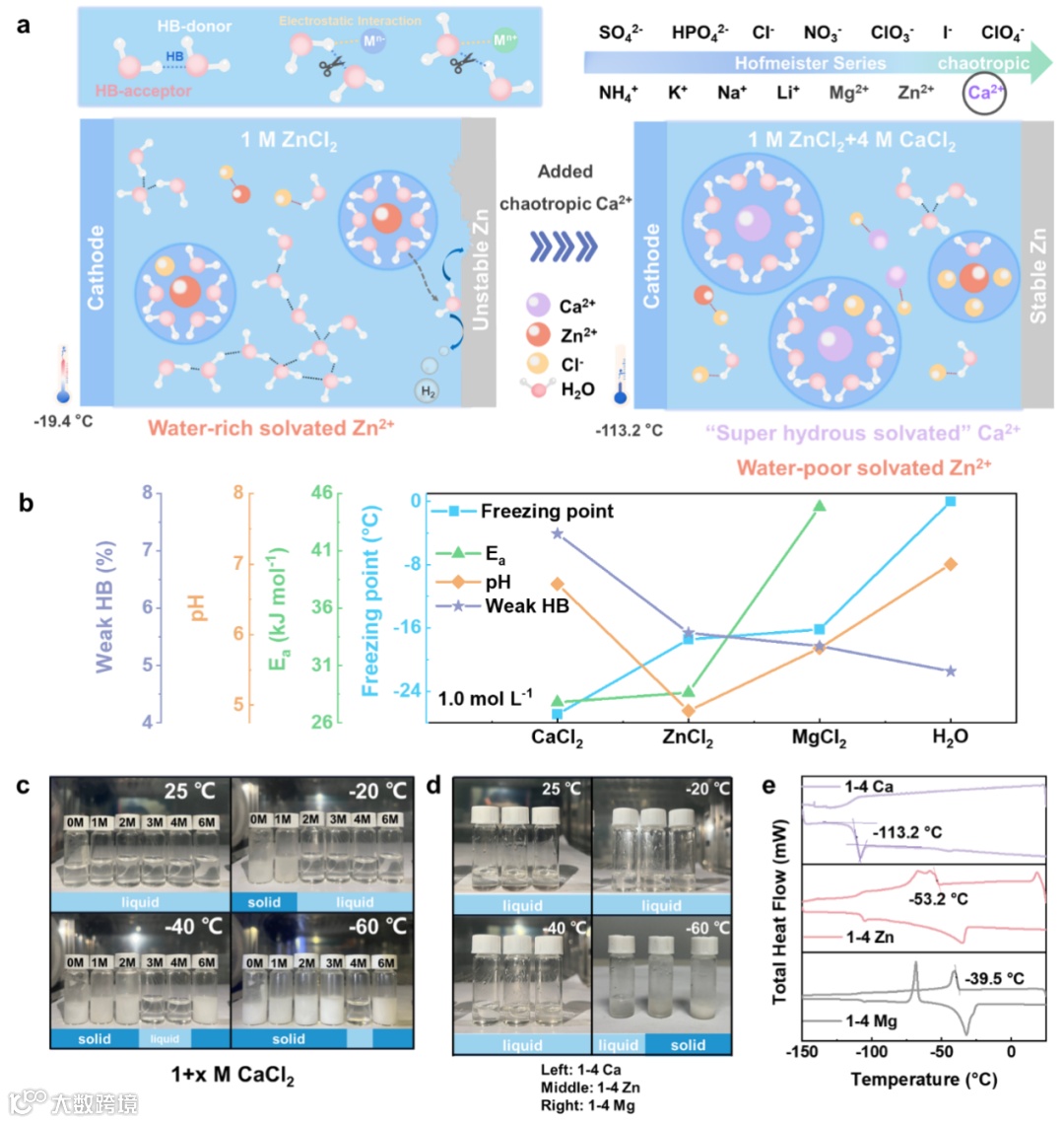 离液Ca2+形成超水合溶剂化构建优异的抗冻水基电解质并稳定锌阳极