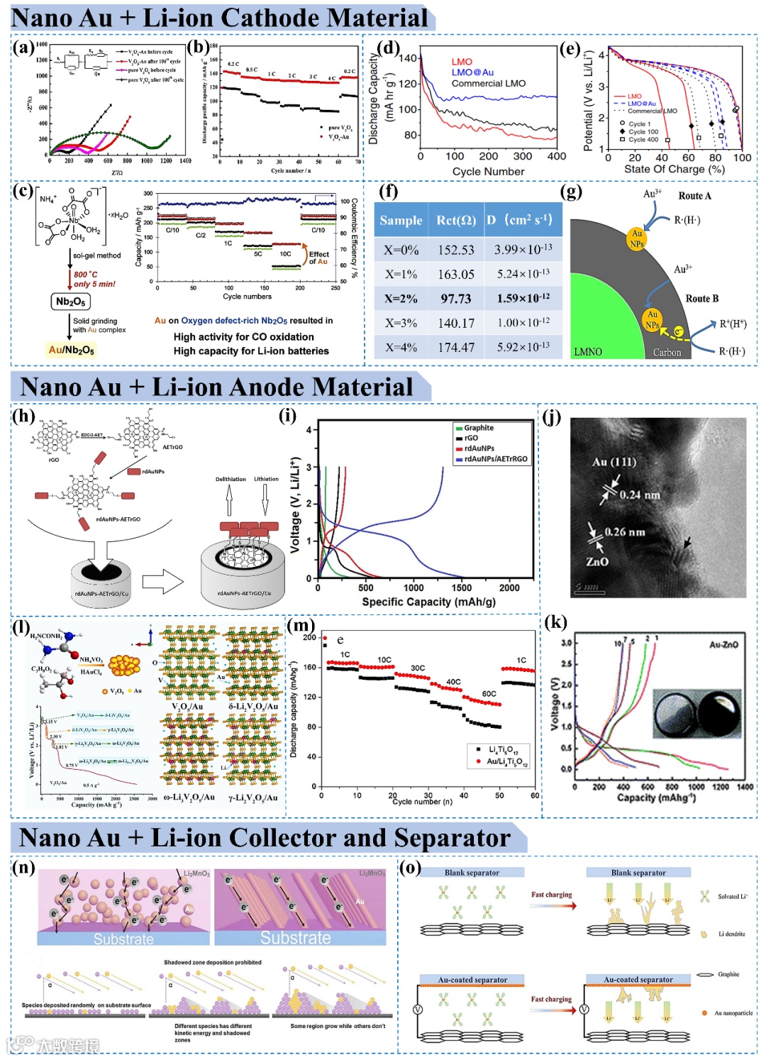 (2)纳米金高电子电导率和离子扩散系数,有助于提高高倍率性能,实现快充。