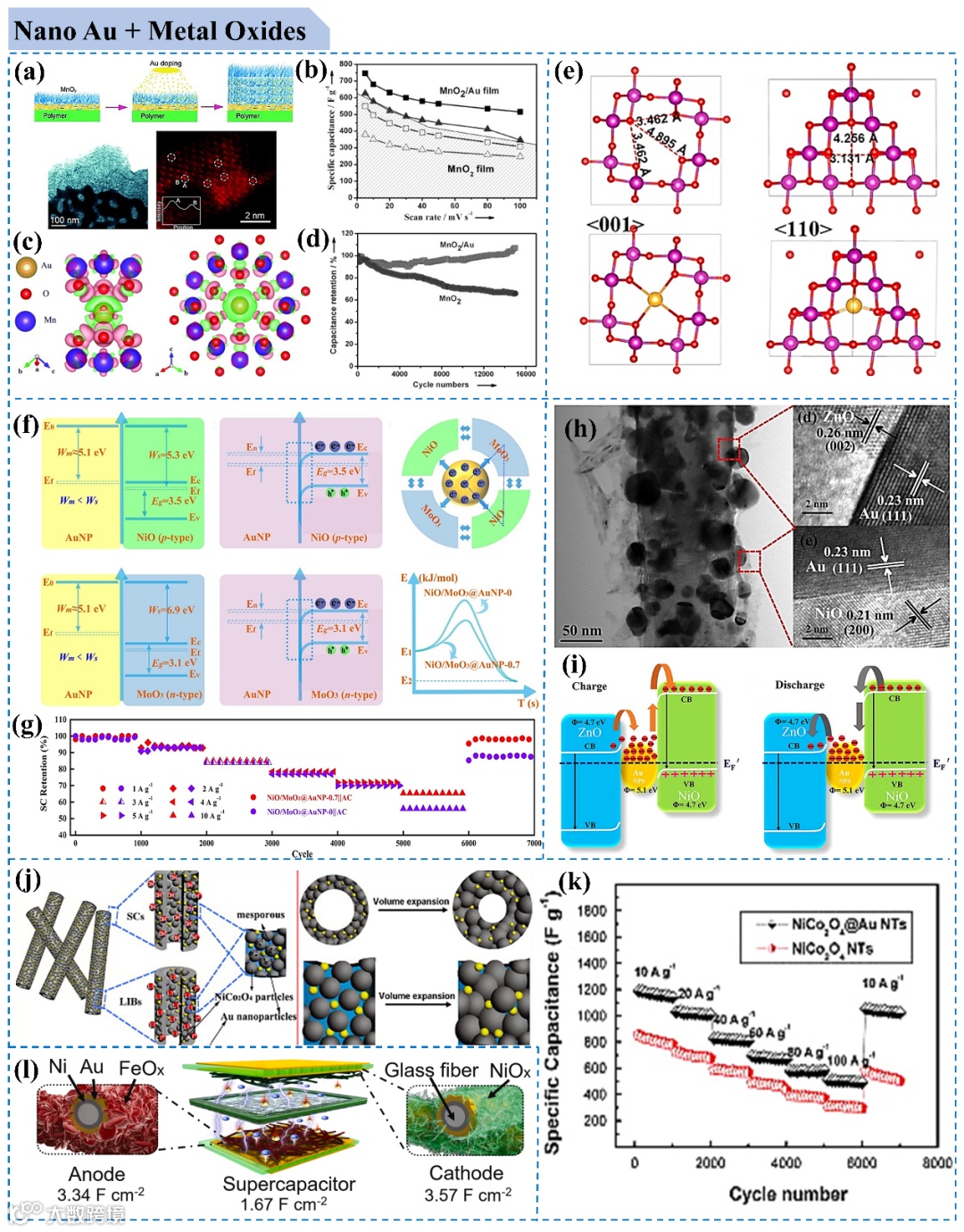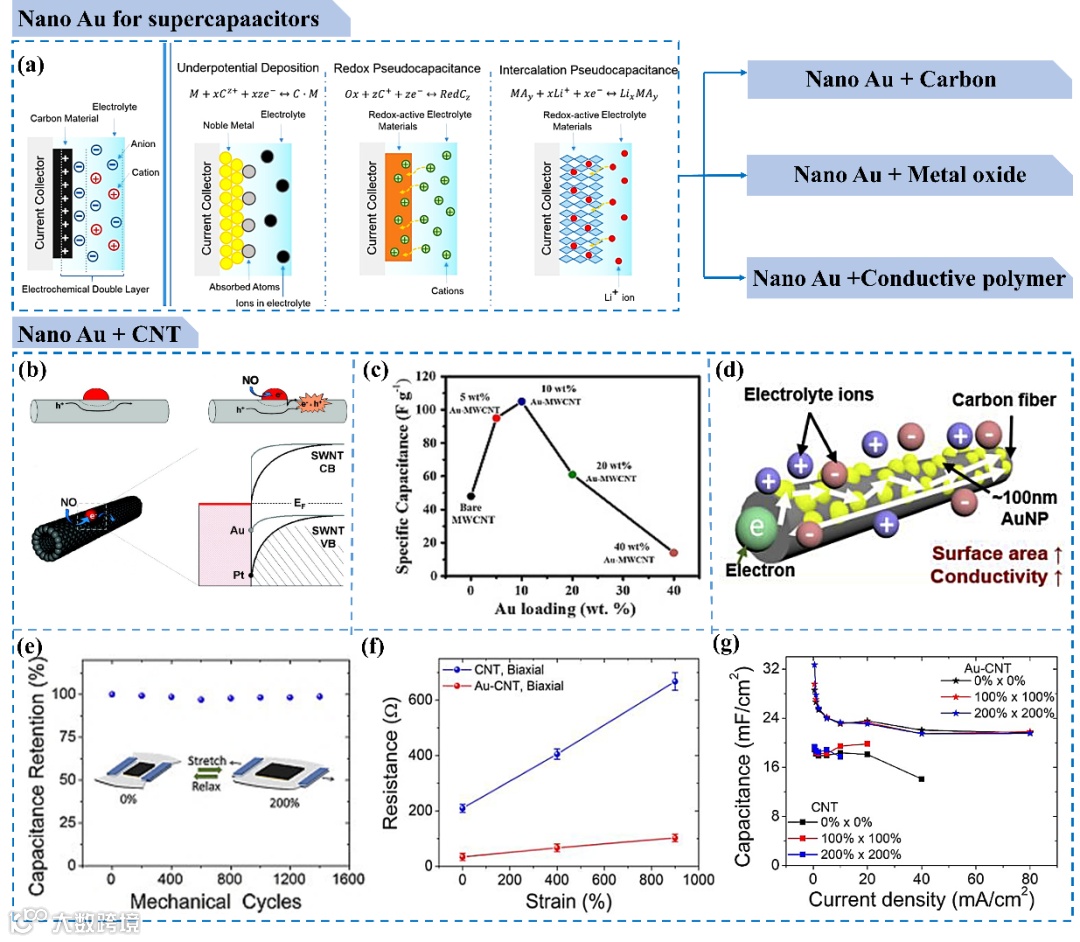 图3. 纳米金在赝电容超级电容器中的研究概况