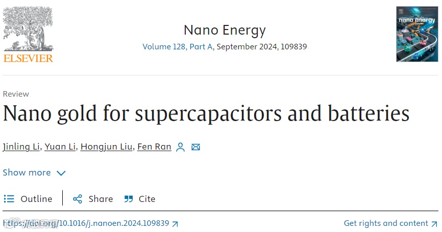 Jinling Li, Yuan Li, Hongjun Liu, Fen Ran*, Nano Gold for Supercapacitors and Batteries, Nano Energy 2024,128: 109839.
