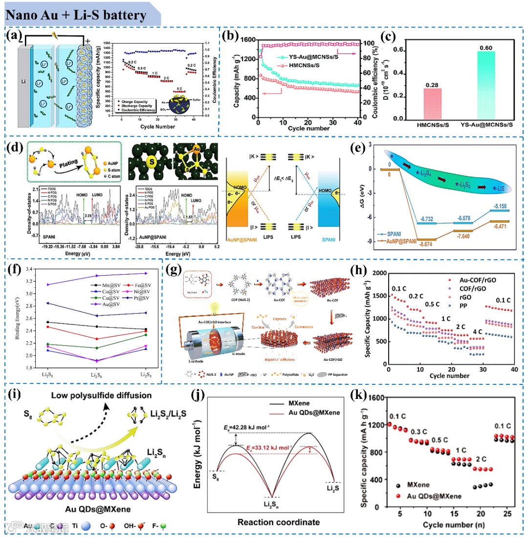 (4)纳米金可以促进多硫化物的沉积,从而防止活性材料的过度聚集。近年来,金属硫电化学领域取得了重大进展,特别是对纳米金作用的理解。这些进展是通过实验、材料计算和模拟技术实现的,从而实现了对基本原理的进一步理解。