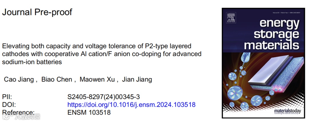 近日,西南大学蒋建副教授、徐茂文教授与天津大学陈彪副教授合作在国际知名期刊Energy Storage Materials上发表题为“Elevating both capacity and voltage tolerance of P2-type layered cathodes with cooperative Al cation/F anion co-doping for advanced sodium-ion batteries”的文章。该文章提出了一种Al/F阴阳离子协同共掺杂策略,有效实现层状氧化物Na2/3Ni1/3Mn2/3O2 (NNMO)可逆容量和循环稳定性的同步提升。