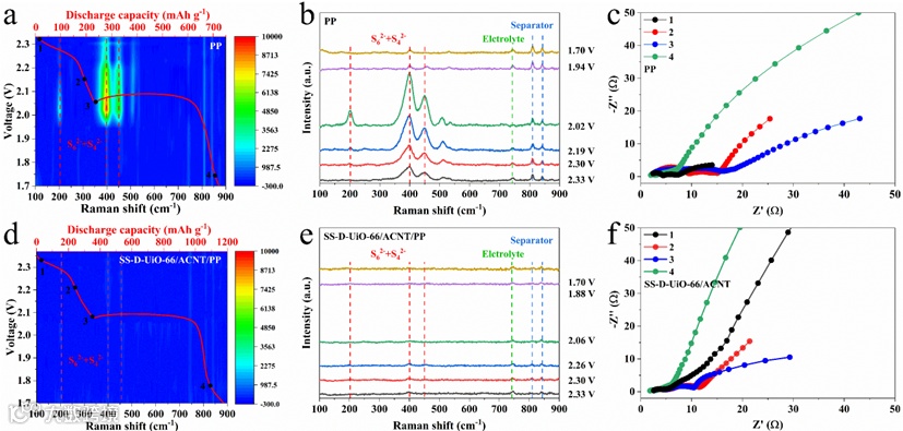 图4. 电化学-原位拉曼、阻抗对放电过程中多硫化物的实时监控分析