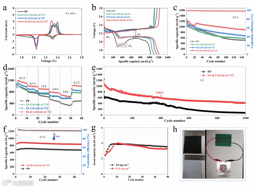 图3. 复合材料修饰隔膜应用于锂硫电池中的电化学性能