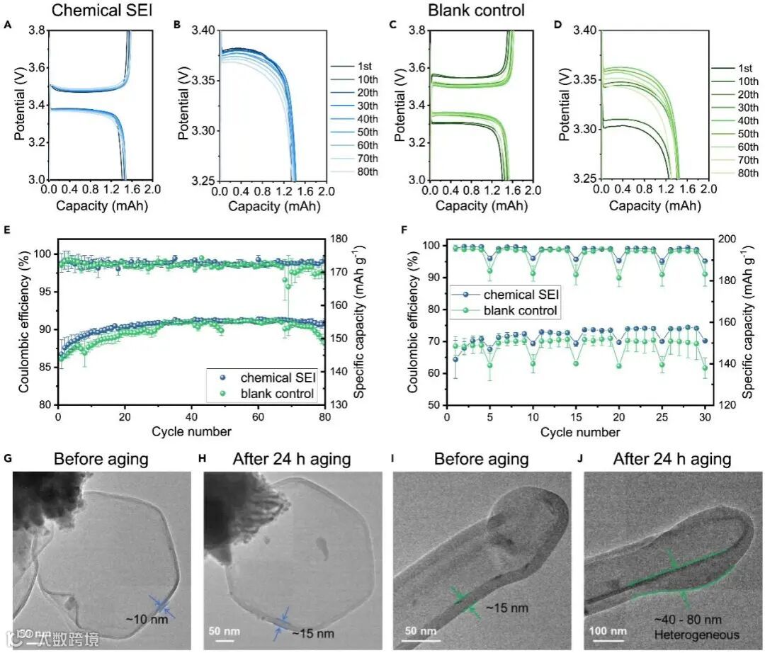 图5要点: 1M LiPF6 in EC/DEC电解液体系中的化学SEI对提升电池性能和抗腐蚀性的贡献