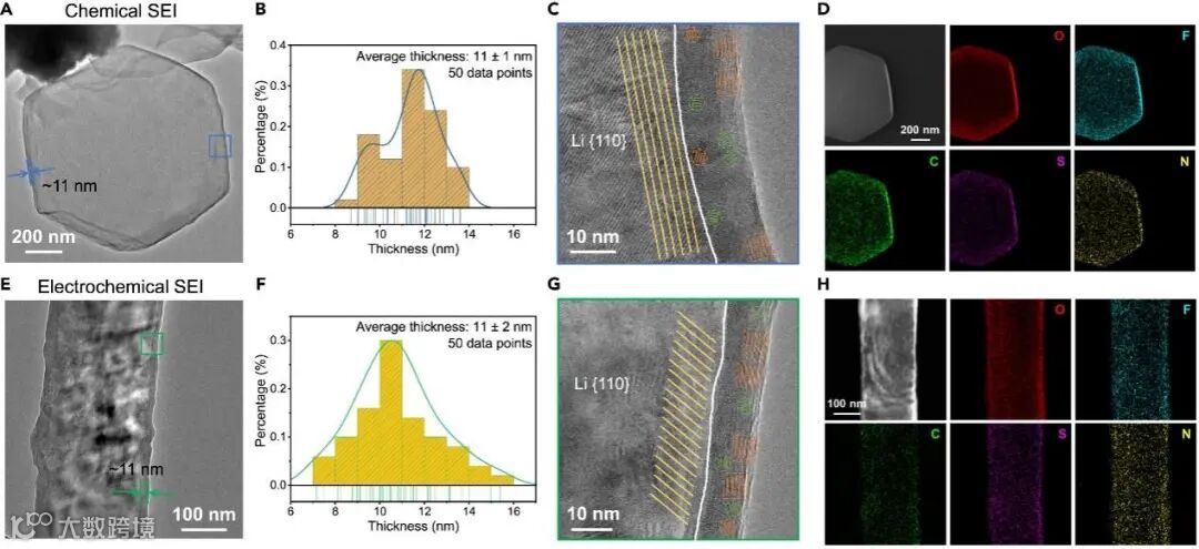图4要点:通过冷冻电镜对4M LiFSI in DME电解液体系中的化学SEI和电化学SEI进行了纳米结构和化学的表征