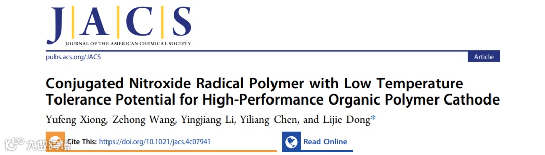 近期,武汉理工大学董丽杰教授团队在Journal of the American Chemical Society期刊发表题为“Conjugated Nitroxide Radical Polymer with Low Temperature Tolerance Potential for High-Performance Organic Polymer Cathode”的研究论文,团队成员博士研究生熊宇风为论文第一作者,董丽杰教授为论文通讯作者。
