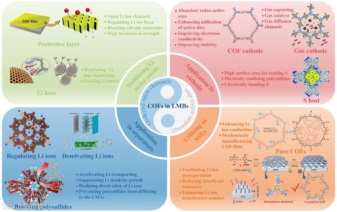 图3. 共价有机框架材 在 锂金属不同组件中的应用示意图。