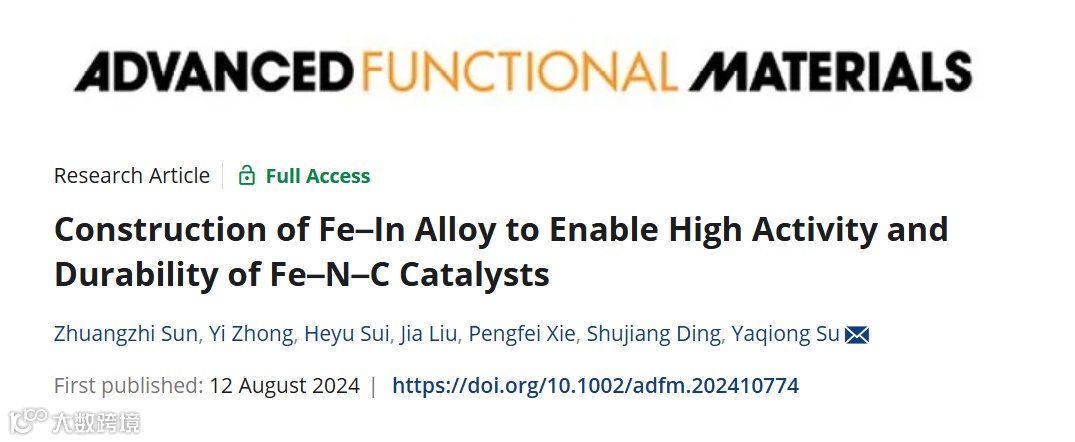 Zhuangzhi Sun, Yi Zhong, Heyu Sui, Jia Liu, Pengfei Xie, Shujiang Ding, Yaqiong Su*. Construction of Fe–In Alloy to Enable High Activity and Durability of Fe–N–C Catalysts. Adv. Funct. Mater. 2024, 2410774.