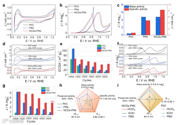 要点三:NCDs-PtNi气凝胶电催化性能提升机制