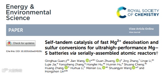 Self-Tandem Catalysis of Fast Mg2+ Desolvation and Sulfur Conversions for Ultrahigh-Performance Mg-S Battery via Serially-Assembled Atomic Reactors Energy Environ. Sci., 2024