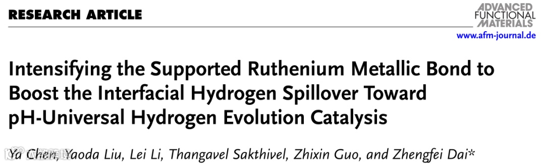 近日,西安交通大学戴正飞教授在国际知名期刊Advanced Functional Materials上发表题为“Intensifying the Supported Ruthenium Metallic Bond to Boost the Interfacial Hydrogen Spillover Toward pH-Universal Hydrogen Evolution Catalysis”的研究性论文。论文探究了Ru金属键强化对界面电子结构的影响,从实验和理论上证明了界面Ru-O-Mo桥键有效地触发了氢溢流效应,加速了催化析氢反应的进行。