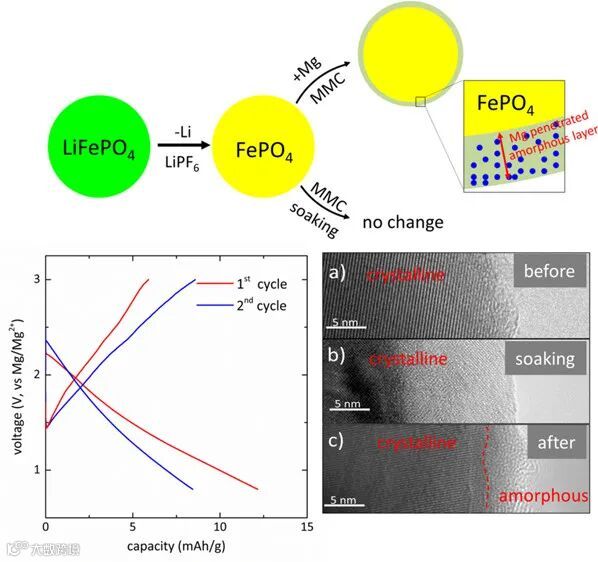 图5. FePO4正极表面上非晶层形成过程的示意图