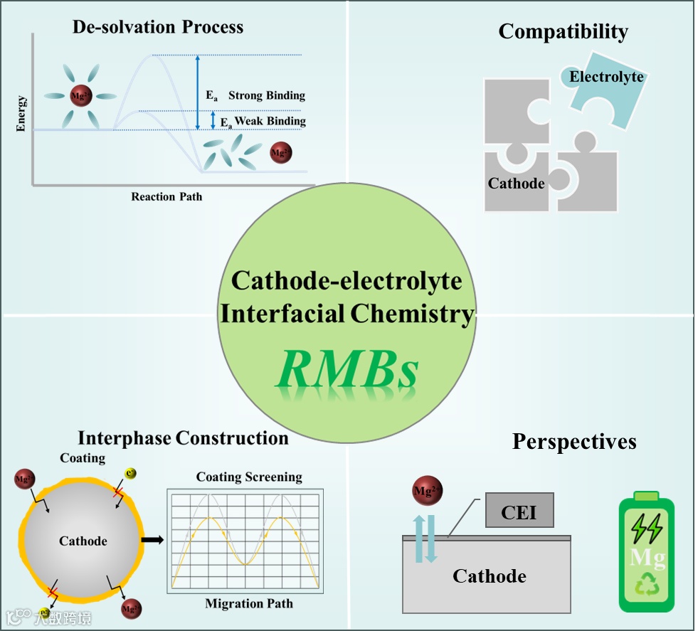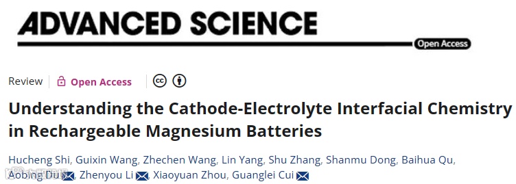 近日,来自中国科学院青岛生物能源与过程研究所的崔光磊研究员、李真酉研究员和杜奥冰副研究员,在国际知名期刊Advanced Science上发表题为“Understanding the Cathode-Electrolyte Interfacial Chemistry in Rechargeable Magnesium Batteries”的综述文章。界面化学对电池的电化学性能有着重要影响,一直是各种电池的关键问题。这篇文章综述了镁二次电池正极-电解质界面化学的研究进展,包括具有代表性的界面现象、不同电解质中的去溶剂化过程、正极与电解质的兼容性以及有利界面构筑的展望。
