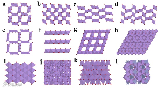 MnO2晶体结构的基本单元是MnO6八面体,其中Mn4+离子占据八面体的中心,六个氧原子位于八面体的角上。这些八面体结构单元通过边缘和/或角连接形成各种晶体结构(如α-, β-, R-, γ-, δ-, λ-, ε-和todorokite型MnO2)。与其他锰氧化物相比,MnO2晶体结构的多样性直接影响了锌锰电池的电化学性能,也是其反应机理复杂的重要原因。