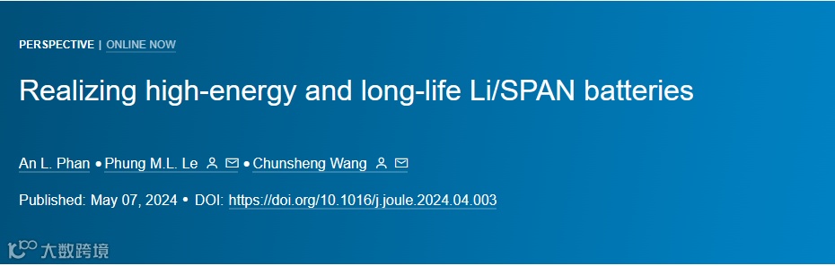 《实现高能量和长寿命的Li/SPAN电池》一文于2024年5月在《Joule》杂志上发表。本文概述了自2002年发明以来SPAN阴极和电池的发展,重点介绍了其经常被忽视或误解的问题。采用定量方法更好地了解Li/SPAN电池的动力学特性。通过分析,确定了阻碍锂/SPAN电池商业化的关键瓶颈,并提出了创新的解决方案。