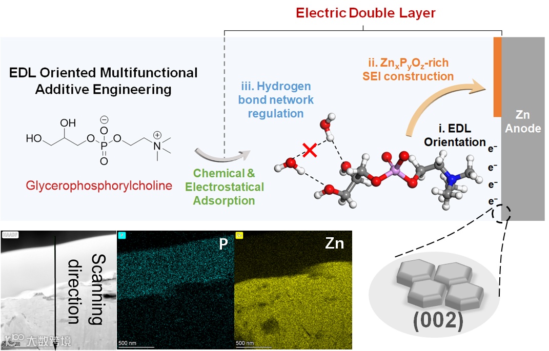 图1. 双电层导向共晶添加剂实现高稳定、高放电深度金属锌负极的构筑。