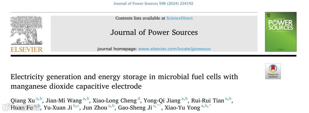 近日,来自南京工业大学的雍晓雨教授在国际知名期刊Journal of Power Sources上发表题为“Electricity generation and energy storage in microbial fuel cells with manganese dioxide capacitive electrode”的文章。该文章合成了一种具有高比电容和低电阻的二氧化锰/碳毡电容性阳极并应用到微生物燃料电池(MFC)中,同时从不同角度分析了电容性电极对MFC产电与储电性能的影响。