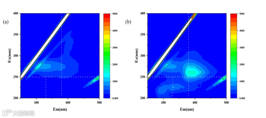 图6. CF电极(a)以及MnO2@CF复合电容性电极(b)表面EPS的三维荧光图